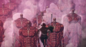 Заключительная глава финала аниме принесла зрителям эмоциональное завершение богатой событиями истории. Сюжет стартует с осознания того, что люди, проживающие на острове, именуемые эльдийцами, обладают особым свойством — способностью пробудить силу титанов, передаваемую от одного к другому. Каждый из девяти титанов уникален внешне и владеет собственными боевыми навыками.